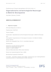 Neben dem Ausbau erneuerbarer Energien ist eine Erhöhung der Speicherkapazität, gerade auch für dezentral erzeugten Strom, ein gewichtiger Baustein der Energiewende in Deutschland. Tatsächlich erfährt der Markt für dezentrale Solarstromspeicher aktuell ein ausgesprochen dynamisches Wachstum, gekennzeichnet vom Eintritt neuer Hersteller und rapide steigenden Verkaufszahlen. Dabei ist dieser Markt nicht nur von rasantem technischen Fortschritt geprägt, sondern auch von wesentlichen organisatorischen Neuerungen. Dies betrifft insbesondere die Vernetzung einer Vielzahl von kleinen, meist in Bürgerhand befindlichen Wind‐ und Sonnenkraftwerken mithilfe digitaler Technologien, die es den Mitgliedern solcher Plattformen bzw. Communities ermöglichen, ihren selbst erzeugten Strom ohne die etablierten Energiekonzerne untereinander zu teilen. Das im vorliegenden Antrag skizzierte Forschungsvorhaben möchte in diesem Kontext das Zusammenspiel und die Erfolgsfaktoren der (kollaborativen) Entwicklung technischer und organisatorischer Neuerungen genauer ergründen und damit unser Wissen über das gemeinsame Auftreten von verschiedenen Innovationen im Allgemeinen und die Entstehung und Durchsetzung von Nachhaltigkeitstransitionen im Besonderen erweitern. In einem Mixed‐Methods‐Design, das sich ebenso auf quantitative wie auf qualitative Verfahren stützt (insbesondere soziale Netzwerkanalyse und problemzentrierte Interviews, ferner teilnehmende Beobachtung auf Branchentreffen und in unternehmensübergreifenden Workshops), sollen Einblicke in die Praxis der Zusammenarbeit von Unternehmen (einschl. Financiers) und politischen Verbänden bei ko‐evolutionären Innovationsprozessen auf Mikro‐Ebene erlangt und darauf aufbauend unternehmensbezogene und industriepolitische Handlungsempfehlungen abgeleitet werden. Mit der besonderen Berücksichtigung politischer Interessen(‐skonflikte) und dem Einbezug von Fragen der Finanzierung adressiert das Projekt wohl dokumentierte Forschungslücken in der (geographischen) Innovations‐ und Nachhaltigkeitsforschung und birgt entsprechende Potentiale, diese Felder nicht nur empirisch, sondern auch konzeptionell zu bereichern.